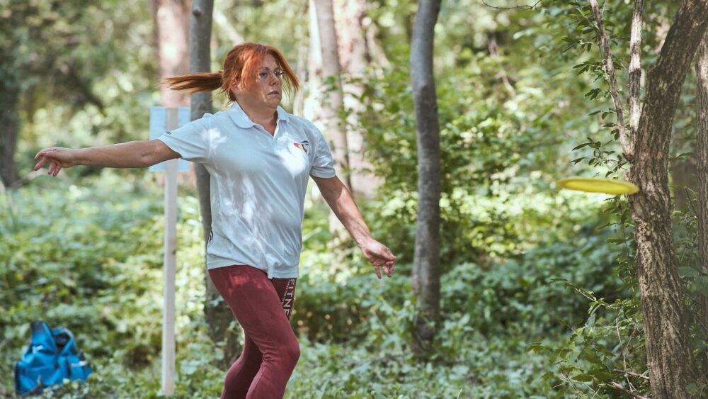 Esta vez jugaba en pareja con Carla, debido al cansancio, intenté forzar menos los lanzamientos y utilizar discos con más velocidad y planeo.