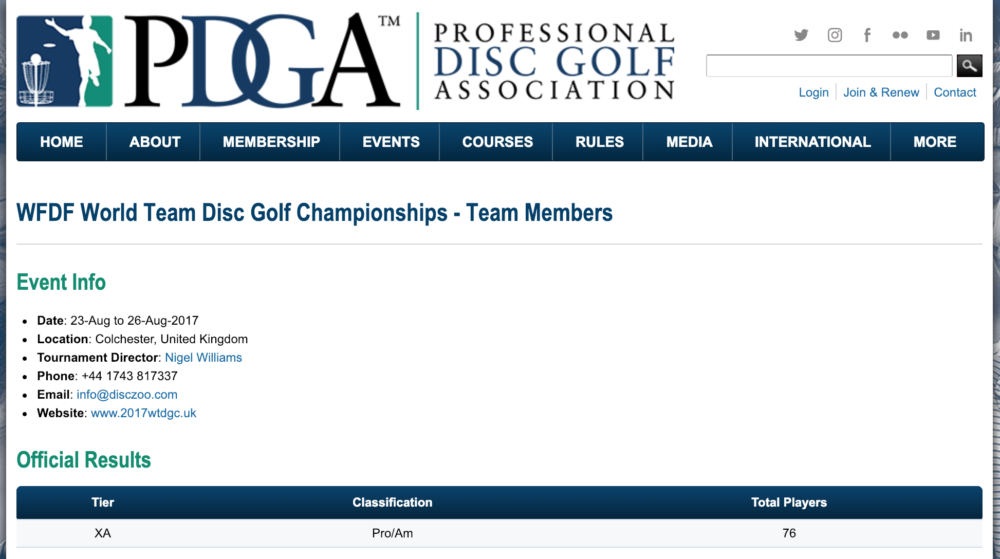 Nombre oficial: World Team Disc Golf Championship 2019.
