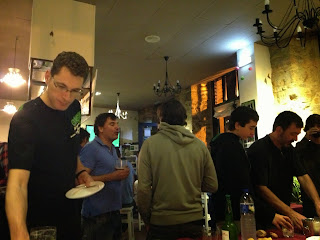 Tras ducha y cambio de indumentaria nos fuimos todos al “Boca a boca” para ingerir la cena incluida en el kit de jugadores. Fue una noche muy bonita donde tuvimos la oportunidad de compartir tiempo con jugadores de otros lugares e intercambiar impresiones. Personalmente tuve la suerte de hablar con Marta y Víctor de Madrid, una pareja llena de energía y sin duda un buen complemento al grupo de discgolfistas españoles. También hable un ratito con las líderes de la categoría femenina, Sofía y Aida, dos jovencitas llenas de talento y buen rollo. En esta amena velada sobró comida, bebida y buen ambiente.